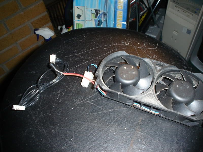 Aside from a few plastic tabs broken off, the fan was cut and spliced into the dvd 12v wire. So i had to repair the fan and the dvd power cable.