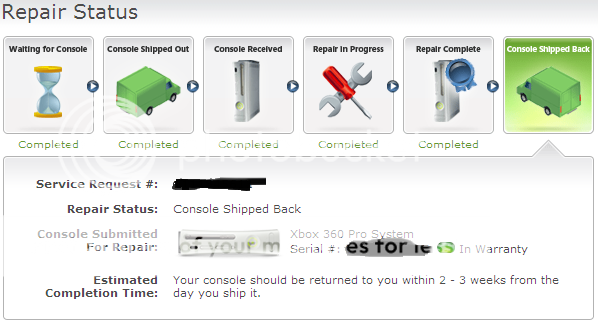 I also got an email titled:"Xbox Repair - Repair Completed", which says that my Xbox was repaired. I'm still not sure if it was actually repaired because I had no warranty sticker on it. Here's a pic of what it says on the website