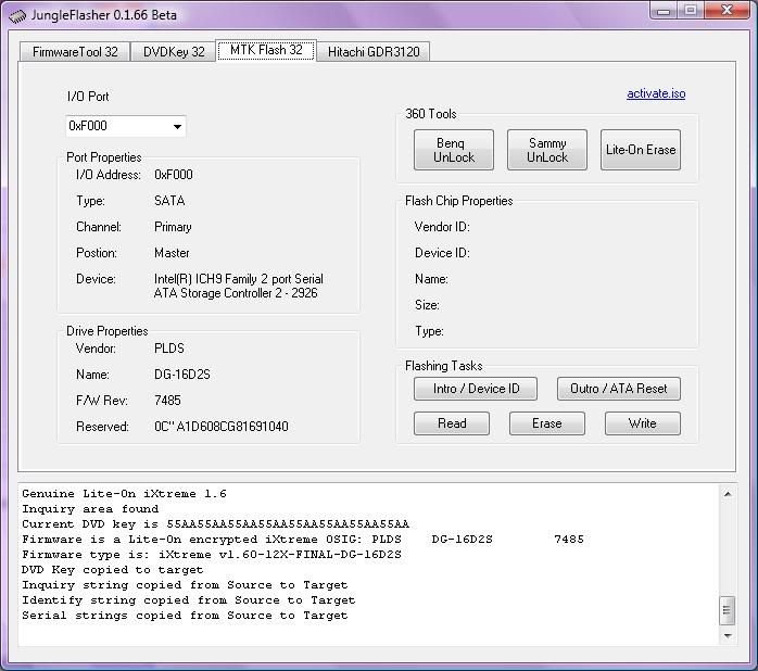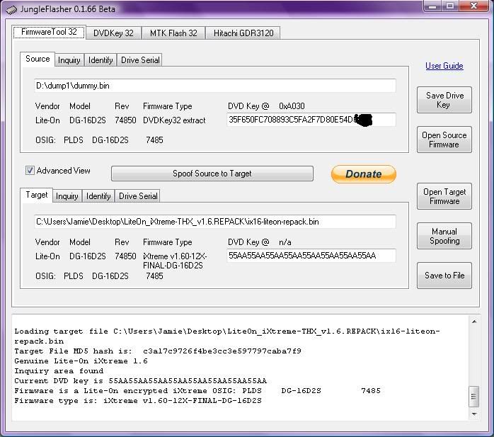 to update your lite-on just open up JF go to firmware 32, and load your dummy.bin as source, then load the lite-on 1.6 under taget, hit spoof to data. then proceed on like you were erasing/flashing your lite-on as normal.