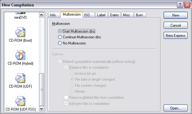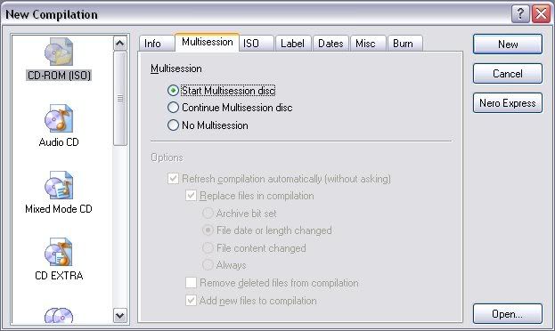 although there was something near the 'backup target' that once said 'to burn please install nero' and now its not there anymore so it must be installed. To use Nero (i think im using version 6.0.0.9), when i first open it up I don't even know which compilation to use, i.e 'cd rom [iso]' 'audio cd' 'mixed mode cd' 'cd extra' 'cd copy' 'video cd' 'super video cd' 'miniDVD' 'cd rom [boot]' cd rom [hybrid]' 'cd rom [udf]' 'cd rom [udf/iso]'? and it also tells me Nero Burning Rom has known issues with my version of windows which is XP Pro but i select continue and it seems to work fine, although i havent burned anything yet.