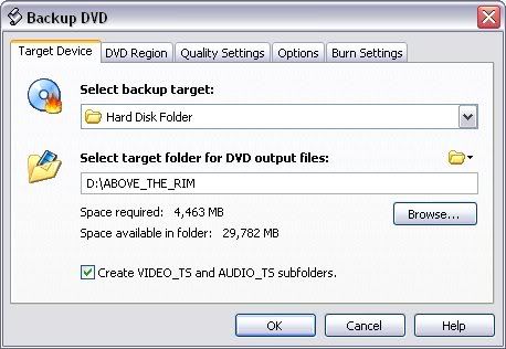 3. Hard Disc Folder: this makes a MOVIE FOLDER with VIDEO and AUDIO TS folders in the movie folder.