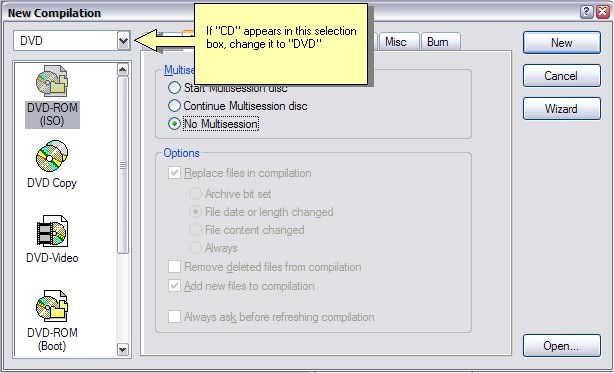 but in my version, it doesnt have the option to select DVD and then a following compilation. Instead below is what mine looks like and all of my compilation options