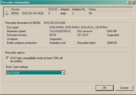 Ok lets set up dvd shrink. Make sur you have enable burn with nero checked under the edit tab/preferences/file I/O. Then after you have opened disc or file and selected the parts of the dvd you want and set compression levels and so on click backup. Select the target device (your LG drive) and quality settings. Then under the burn settings tab make sure the booktype dvd-rom is checked. You're set.