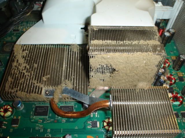 Now just think if it was sucked in from the back and covered the heatsink the other way. I would be even worse than in the picture, the debris (don't know what to call it) would be trapped and your xbox would definitely overheat.