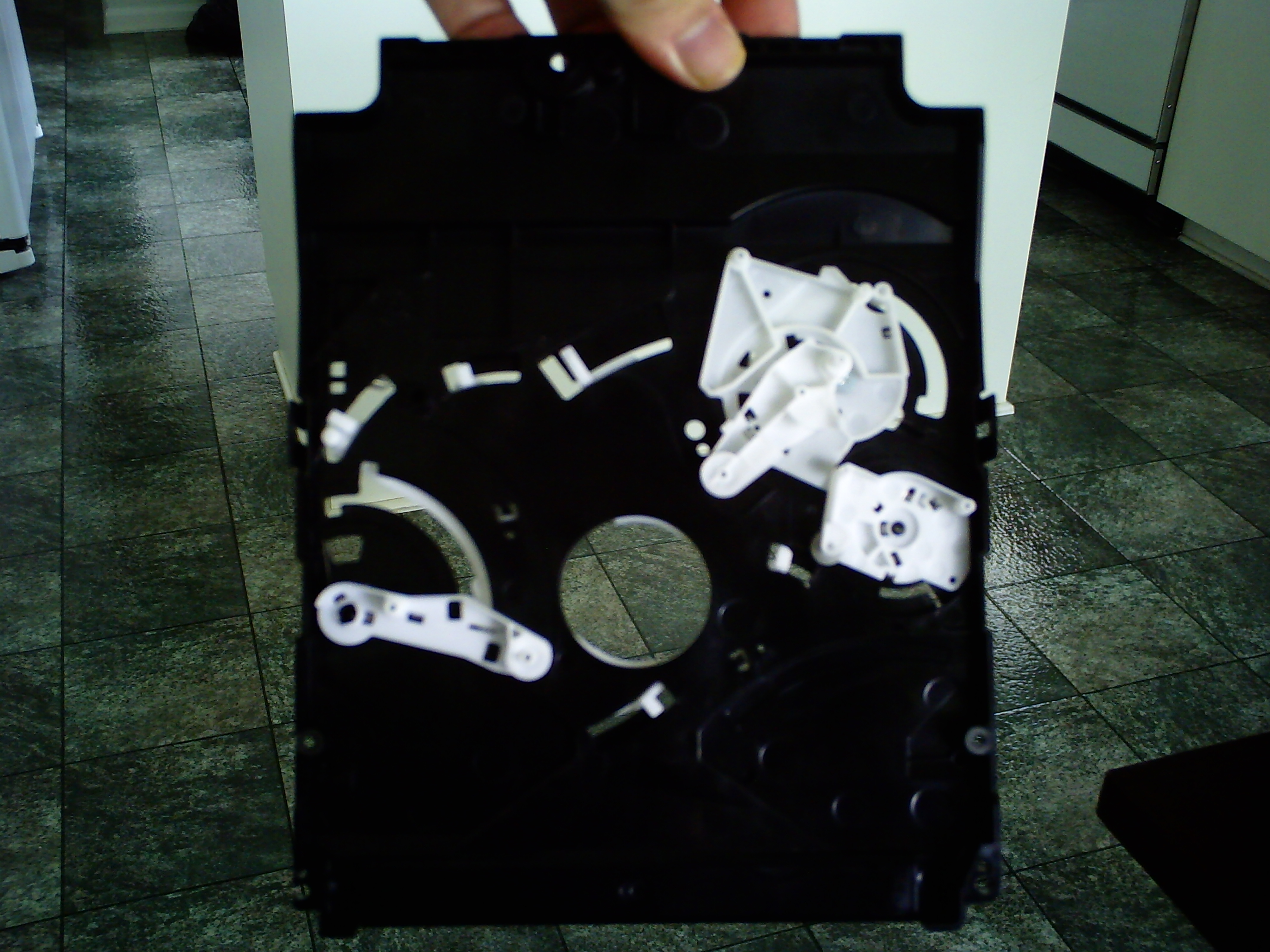 The right side is more difficult, which relies on the disc position to push the slide bar to the back so it will lift the right side of the assembly, and as it gets to the end, it also opens up a switch to signify the disc is in the drive.