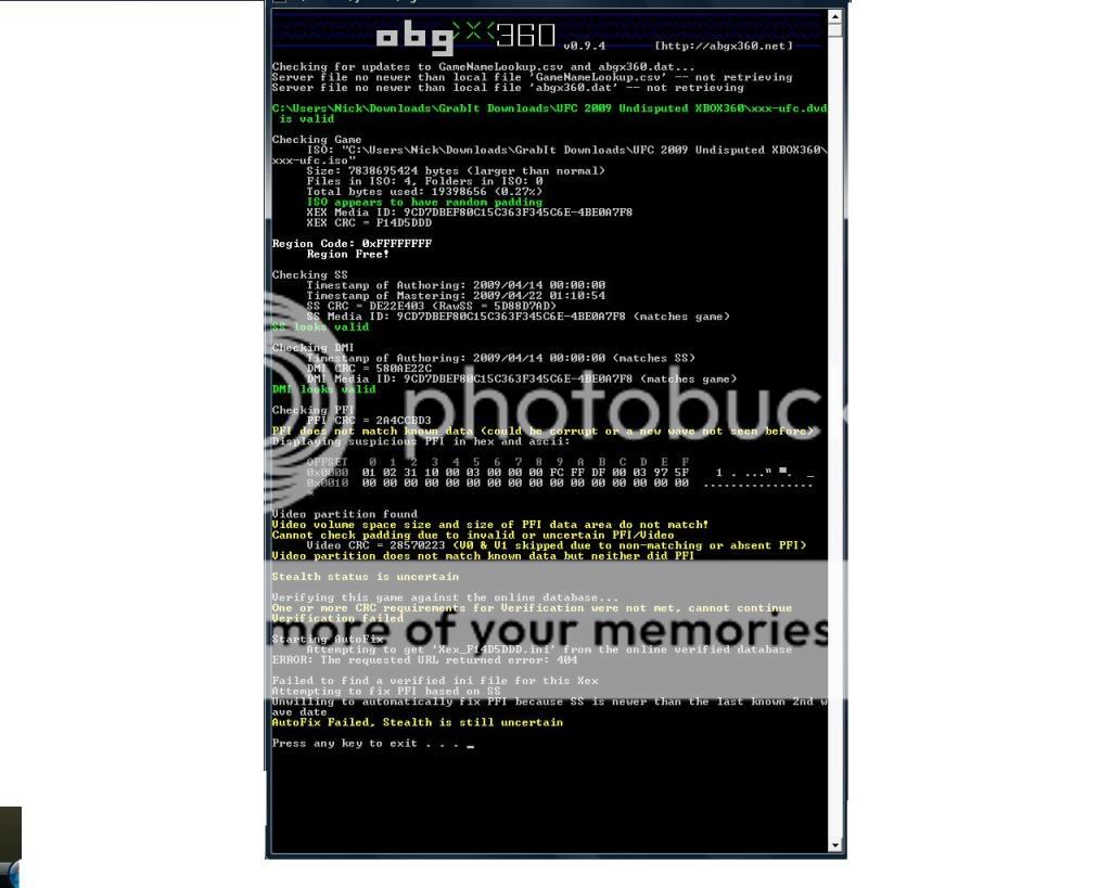 in abgx360, go to the "AutoFix" tab, and set the "AutoFix Threshold" to Level 3. Then run the program again and see what it comes up with.