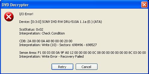 Now i tried to burn another copy of the game, and i keep getting this error...