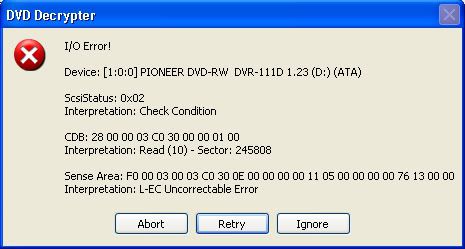 Ok, one problem though. I'm trying to rip all the backups from the Memorex DVDs in order to burn them to the Verbatim DVDs instead, but I'm getting an error every single time while ripping: