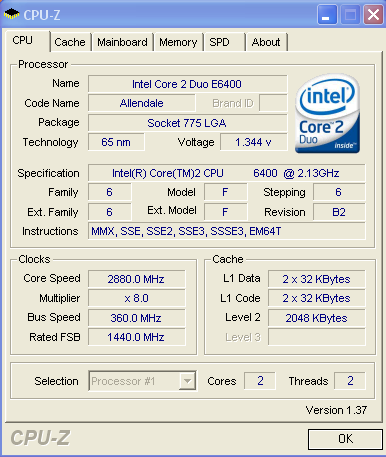 Rig #1 Asus Rampage Formula Mobo, Intel Core2Quad Q9450 CPU @ 3.55ghz, 2gb Corsair DDR2 1066 Dominator Ram @ 5-5-5-15, TR Ultra 120 Extreme w/ Scythe 9 blade 110 cfm 120mm Fan HSF, HIS Radeon 512mb HD3850 IceQ TurboX GPU, Corsair 620HX P/S, CM Stacker 830 Evo Case, Rig #2 Asus P5W DH Deluxe Mobo, Intel C2D E6600 CPU @ 3.6ghz, 2gb Corsair XMS2 DDR2 800 Ram @ 4-4-4-12-2t, Zalman CNPS9500LED HSF, Sapphire Radeon X850XT PE GPU, Corsair 620HX P/S, Cooler Master Mystique Case, Viewsonic 20.1" Widescreen Digital LCD Monitor, Klipsch Promedia Ultra 5.1 THX Desktop Speakers, http://valid.x86-secret.com/show_oc.php?id=348351 http://valid.x86-secret.com/show_oc.php?id=236435